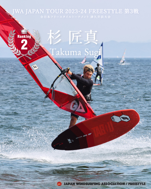 ウインドサーフィン・フリースタイル 守屋拓海プロ(17歳)が、11月4日(土)・5日(日)に津久井浜(神奈川県横須賀市)で開催された、JWA ジャパンツアー 2023-24 フリースタイルツアー第3戦「全日本フリースタイルトーナメント津久井浜大会」プロクラスで優勝を果たしました。今季すべての国内大会において負けなしの守屋選手。3年連続 JWAフリースタイル年間ランキング1位に王手をかけた。