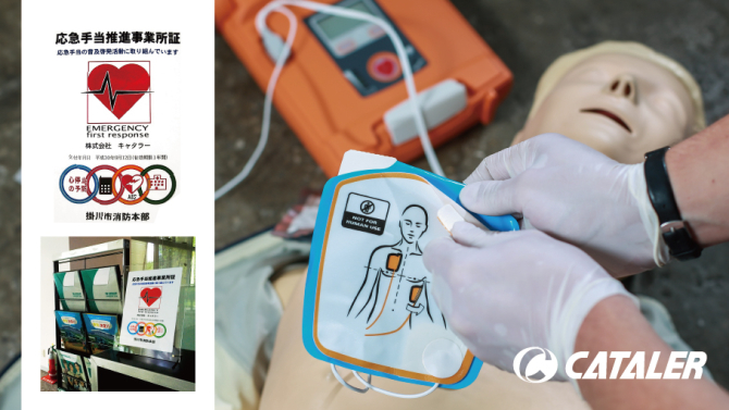 2018年9月12日、当社は「応急手当推進事業所」として認定され、掛川市消防本部から「応急手当推進事業所証」が交付されました。