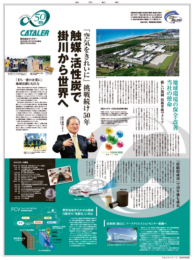 株式会社キャタラーが50周年を迎えるにあたり、静岡新聞社より当社社長の砂川博明にインタビューをしていただきました。
